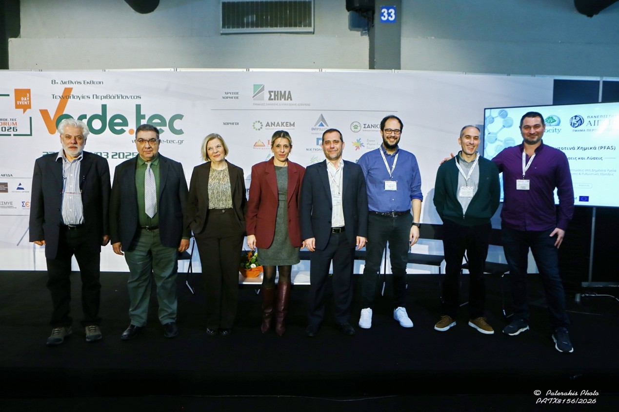 Το ECOCITY σε συνεργασία με το Τμήμα Περιβάλλοντος του Πανεπιστημίου Αιγαίου πραγματοποίησαν την Παρασκευή 27 Φεβρουαρίου 2026, στο MEC Παιανίας, στο πλαίσιο του Verde.tec Forum 2026, ένα εργαστήριο με θέμα «Τα Παντοτινά Χημικά (PFAS) – Προκλήσεις και Λύσεις». Σκοπός της εκδήλωσης ήταν η επιστημονική κατάρτιση και η ενίσχυση του δημόσιου διαλόγου σχετικά με τις επιπτώσεις των PFAS στη δημόσια υγεία και την ποιότητα του νερού, εκτός από τις τεχνολογίες που μπορούν να συμβάλλουν στη διαχείρισή τους. Ο Δρ. Βαφειάδης, Πρόεδρος ΔΣ του ECOCITY, άνοιξε την εκδήλωση με χαιρετισμό.