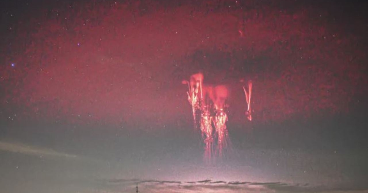Η στιγμή που καταγράφηκε πάνω από την πόλη Ποσσάνιο, στη βόρεια Ιταλία, αποτυπώθηκε από τον φωτογράφο Βάλτερ Μπινότο, ο οποίος έχει κερδίσει το βραβείο Wildlife Photographer of the Year στο παρελθόν. Το εξαιρετικό στιγμιότυπο αποτυπώνει έναν κόκκινο δίσκο, που θυμίζει ιπτάμενο αντικείμενο, με ένα κεντρικό στοιχείο που φαίνεται να είναι μια εντυπωσιακή δομή που παραπέμπει σε μέδουσα και ονομάζεται sprite.