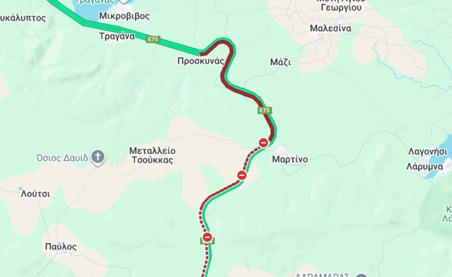 Τα σοβαρότερα προβλήματα παρατηρούνται στο σημείο του Μαρτίνου, στο 125ο χιλιόμετρο της ΠΑΘΕ, όπου σχηματίζονται ουρές οχημάτων μήκους περίπου 10 χιλιομέτρων. Το μποτιλιάρισμα ξεκινάει λίγο μετά τα διόδια της Τραγάνας, και λίγα χιλιόμετρα μετά από αυτά, η κυκλοφορία περιορίζεται σε μία μόνο λωρίδα.