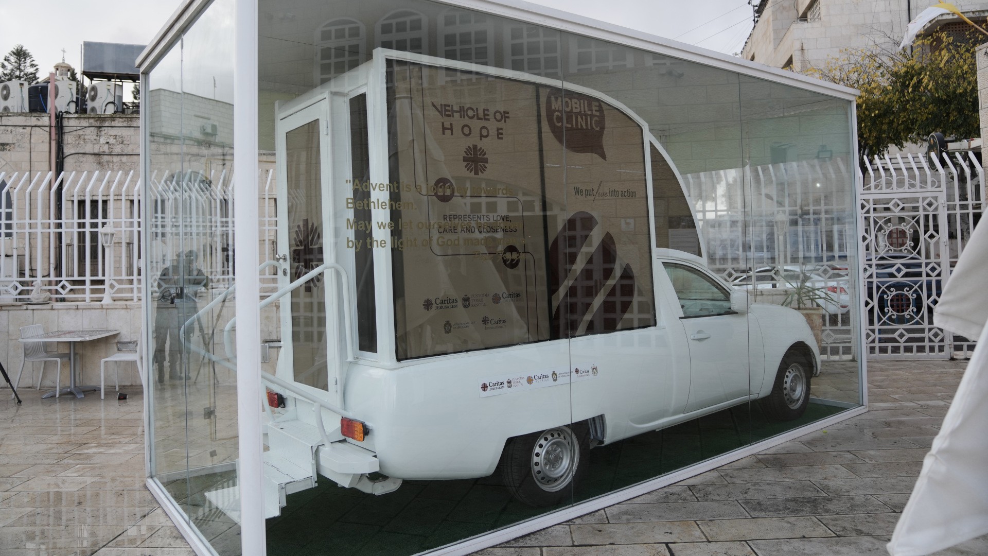 Ένα ιδιαίτερα συμβολικό μεταφερόμενο ιατρικό κέντρο, το οποίο έχει τη δική του ιστορία, παρουσιάστηκε πρόσφατα στη Βηθλεέμ. Το όχημα αυτό είχε χρησιμοποιηθεί από τον αείμνηστο Πάπα Φραγκίσκο στην επίσκεψή του στη Βηθλεέμ το 2014 και τώρα μετατρέπεται σε κινητή μονάδα υγείας, που θα στοχεύει στην παροχή υπηρεσιών υγειονομικής φροντίδας στα παιδιά της Γάζας.