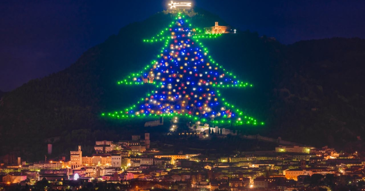 Στις κατάφυτες κλίσεις του Monte Ingino, που υψώνονται πάνω από την ιστορική Gubbio, κάθε Δεκέμβριο αναδεικνύεται το μεγαλύτερο χριστουγεννιάτικο δέντρο στον κόσμο σύμφωνα με το Βιβλίο Γκίνες. Το εντυπωσιακό φωτισμένο σχήμα, ύψους 750 μέτρων και πλάτους 450 μέτρων, προσελκύει πλήθος επισκεπτών, προσφέροντας μια μαγευτική θέα.