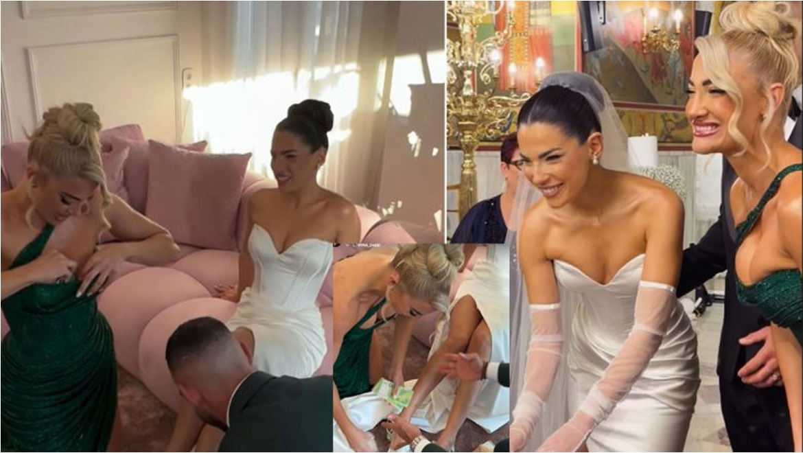 Φυσικά, ο παραδοσιακός γάμος δεν θα ήταν πλήρης χωρίς το έθιμο που αφορά τα παπούτσια της νύφης, όπου απαιτούνται χρήματα για να κατασκευαστούν. Η Ιωάννα Τούνη και ο άλλος κουμπάρος δεν δίστασαν να βγάλουν 100ευρα και 200ευρα από τα πορτοφόλια και τα μπούστα τους προκειμένου να βοηθήσουν τη μέλλουσα νύφη να φτάσει στην εκκλησία.