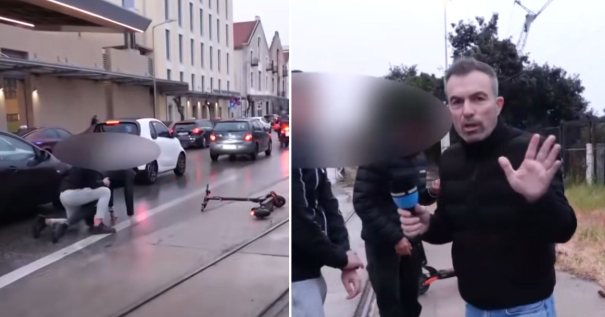 Καθώς ο δημοσιογράφος συνομιλούσε με μια κάτοικο της Πάτρας, εκείνη περιέγραφε πώς είχε πέσει με το ποδήλατό της στο ίδιο σημείο λόγω των γραμμών του τρένου που περνούν διαγώνια.