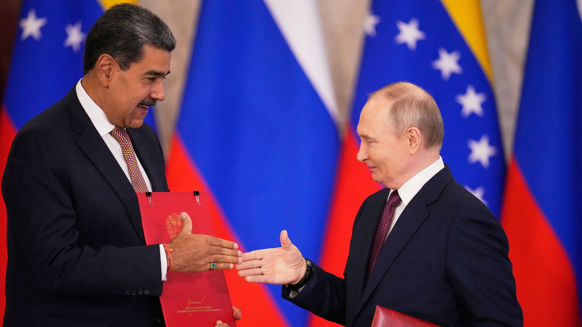 Θυμίζεται ότι ο Μαδούρο αντιμετωπίζει προκλήσεις από τον Τραμπ, ο οποίος εντείνει τις προσπάθειές του για την απομάκρυνση του Βενεζουελάνου ηγέτη, καθώς στρατιωτικές δυνάμεις παραμένουν στη θαλάσσια περιοχή της Καραϊβικής. Ο Πούτιν και ο Μαδούρο συζήτησαν επίσης τη συνεργασία τους σε οικονομικά έργα και την ενεργειακή πολιτική.