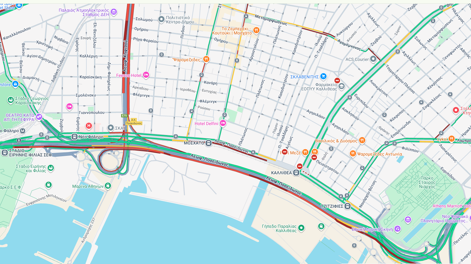 Η κυκλοφορία στη Λεωφόρο Ποσειδώνος είναι εξαιρετικά δυσχερής, ειδικά κοντά στο Ιδρυμα «Σταύρος Νιάρχος», όπου σημειώθηκε το ατύχημα. Από την άλλη, η Παραλιακή στο ρεύμα προς Γλυφάδα έχει εισέλθει σε κατάσταση συμφόρησης.
