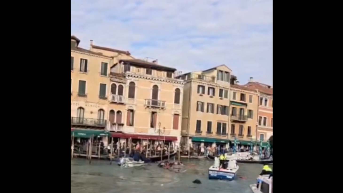Uno schianto sul ponte di Rialto, un motoscafo e due gondole semidistrutti e otto persone in acqua. Si è concluso senza vittime o feriti gravi ma solo molta paura e sommozzatori al lavoro per recuperare quanti fossero finiti fuori bordo un incidente in Canal Grande a Venezia. Il… pic.twitter.com/itqTzEqyVy