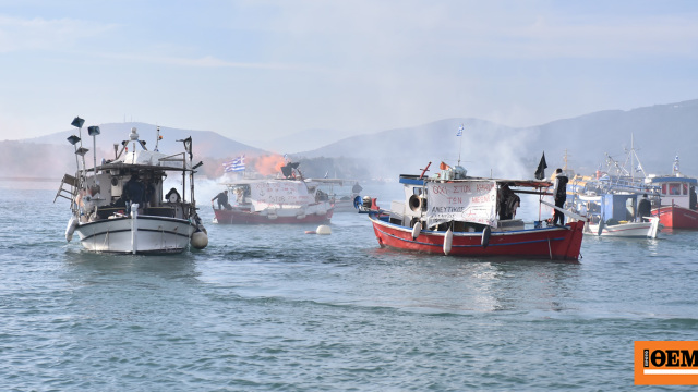 Παράλληλα, οι ψαράδες του Βόλου συμμετέχουν σε αποκλεισμούς στο λιμάνι από τη θάλασσα.