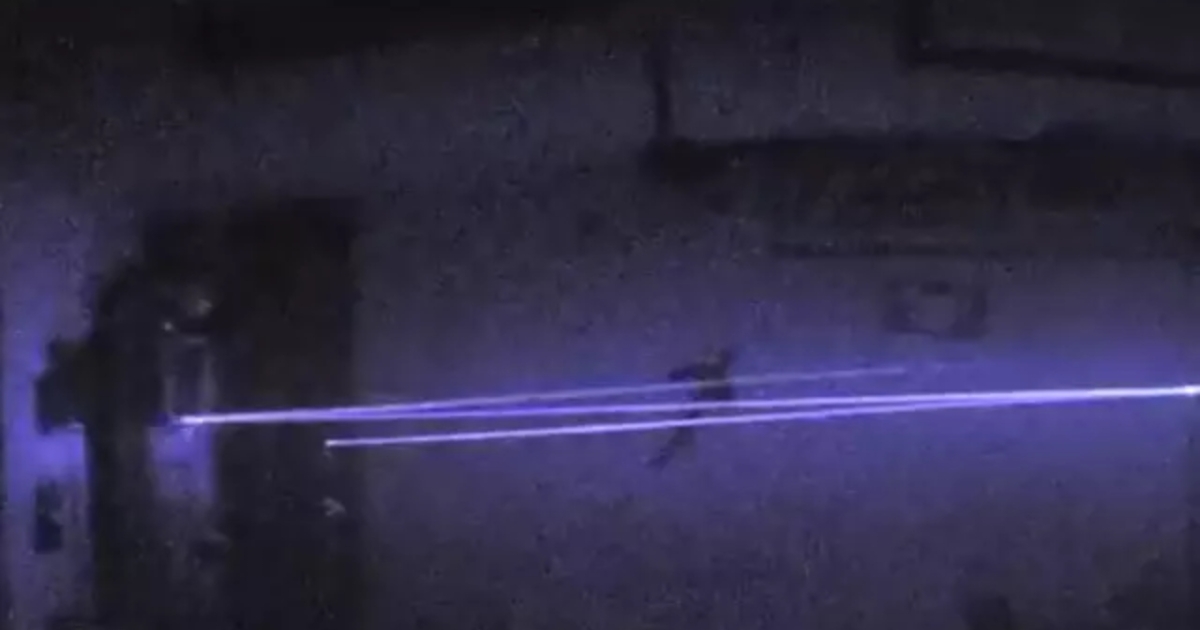 Για την επίδειξη, ο Brian εγκατέστησε έναν ισχυρό laser στο γκαράζ του. Η ακτίνα προσκρούει σε έναν καθρέφτη, ανακλάται σε έναν δεύτερο και συνεχίζει σε επαναλαμβανόμενη πορεία μέχρι να βγει και να χτυπήσει τον τοίχο.